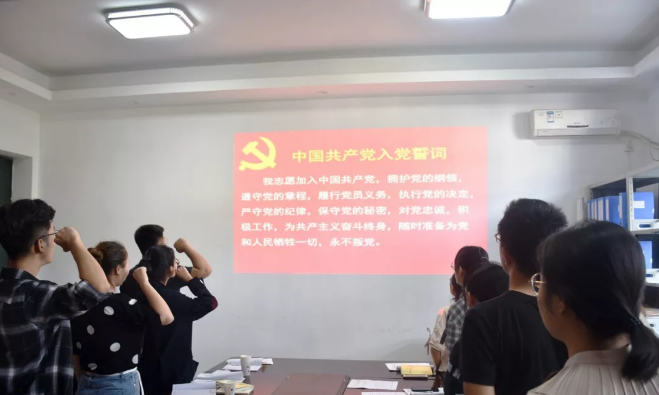 最后,全体党员在老师的带领下,重温了入党誓词。在铿锵有力的誓词声中,每位党员做出承诺,要不忘初心、牢记使命,担负起员工党员的担当与责任。