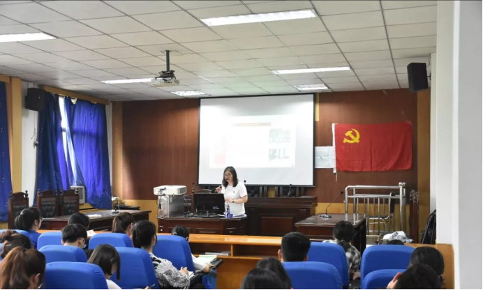 于宝钗老师主讲了入党积极分子培训第七课与第八课。首先,于宝钗老师以“党的基本知识”为主题讲解了第七课,重点讲述了两项内容:一是介绍“中国共产党”这一名称的由来以及党旗和党徽组成部分的内涵;二是对《中国共产党章程》的地位和内容进行了概述,介绍了党的指导思想、自治制度与机构、党的纪律等方面的知识。最后,于宝钗老师做了主题为《中国共产党发展党员工作细则》的第八课培训,她从总则、关于入党申请、入党积极分子的确定和培养等八个章节详细介绍了《中共qm球盟会委员会发展党员工作实施细则》,使同学们对入党基本流程有了一定了解。