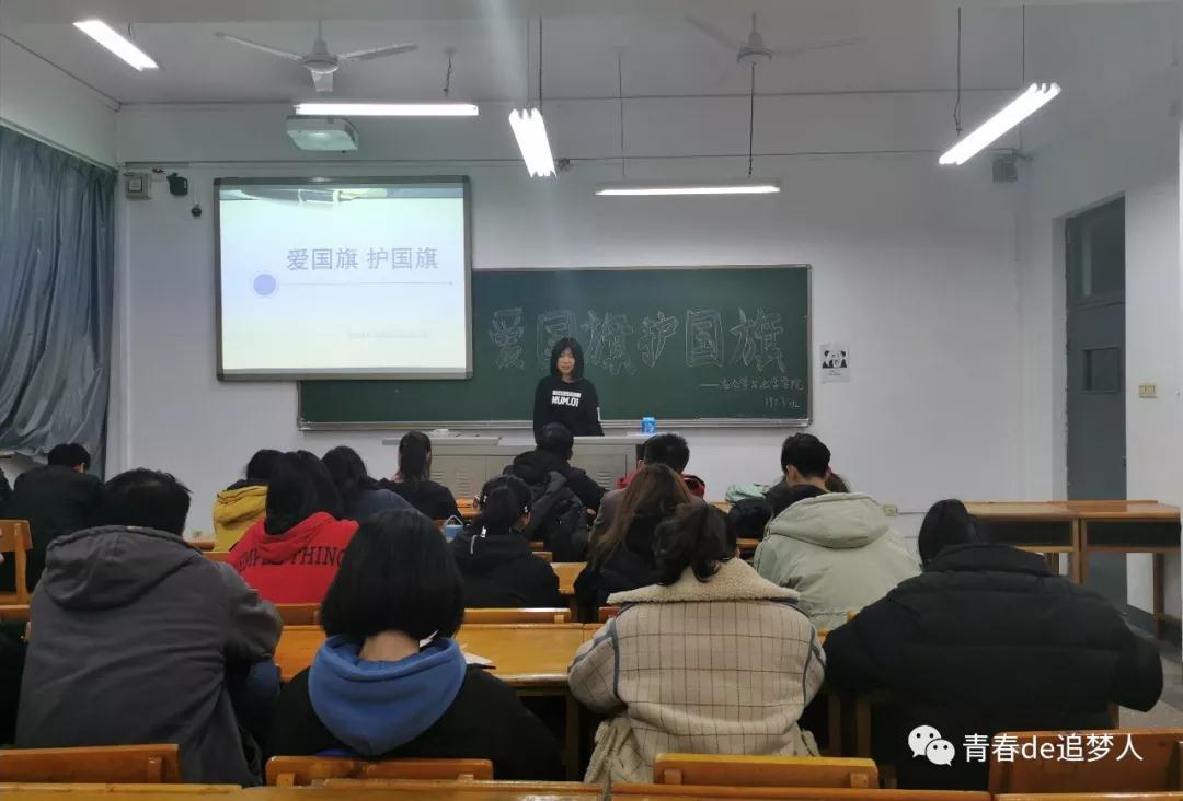 为增强支部团员对国旗、国徽知识与升旗仪式的了解,11月27日,公司1903团支部在07307教室开展了“爱国旗,护国旗”主题团日活动。