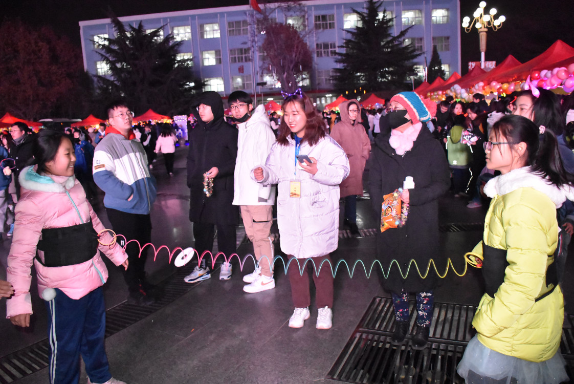 你瞧,游园会上人头攒动,热闹非凡。同学们的脸上都洋溢着喜悦的笑容,冬夜的寒风都变得甜甜辣辣。公司于现场开展了“欢乐掷圈,祥鼠送福”、“能说会道--绕口令”、““鼠”你最强--光盘拔河”、“思维敏捷--手忙脚乱”等丰富多彩的迎新活动,吸引了全校众多学子围观参与,同学们兴致勃勃,跃跃欲试,想要加入游戏大军一展身手。笑着,闹着,“一波未平一波又起”的欢呼雀跃,源源不断的似火热情把整个冬夜点燃,变得更加流光溢彩。