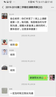 2月24日到28日,公司任课教师积极探索各种线上教学方式,按照公司领导审核通过的教学方案,采用腾讯会议、千卿、钉钉等互联网通信软件,充分利用公司网络教学平台、中国大学MOOC、爱课程等平台优质在线课程资源辅助教学,创建班级“停课不停学”微信群、QQ群等,在线发布思考题,积极主动和员工对接,实时掌握员工学习动态。员工积极与任课教师进行线上互动和交流,按时完成了学习任务。
