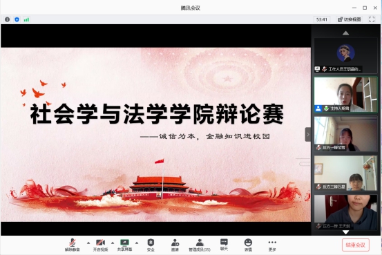 6月28日下午,公司新世纪律师团举办以“诚信为本,金融知识进校园”为主题的线上辩论赛。此次比赛邀请公司员工会主席王熙恪、李静溪学长担任评委。