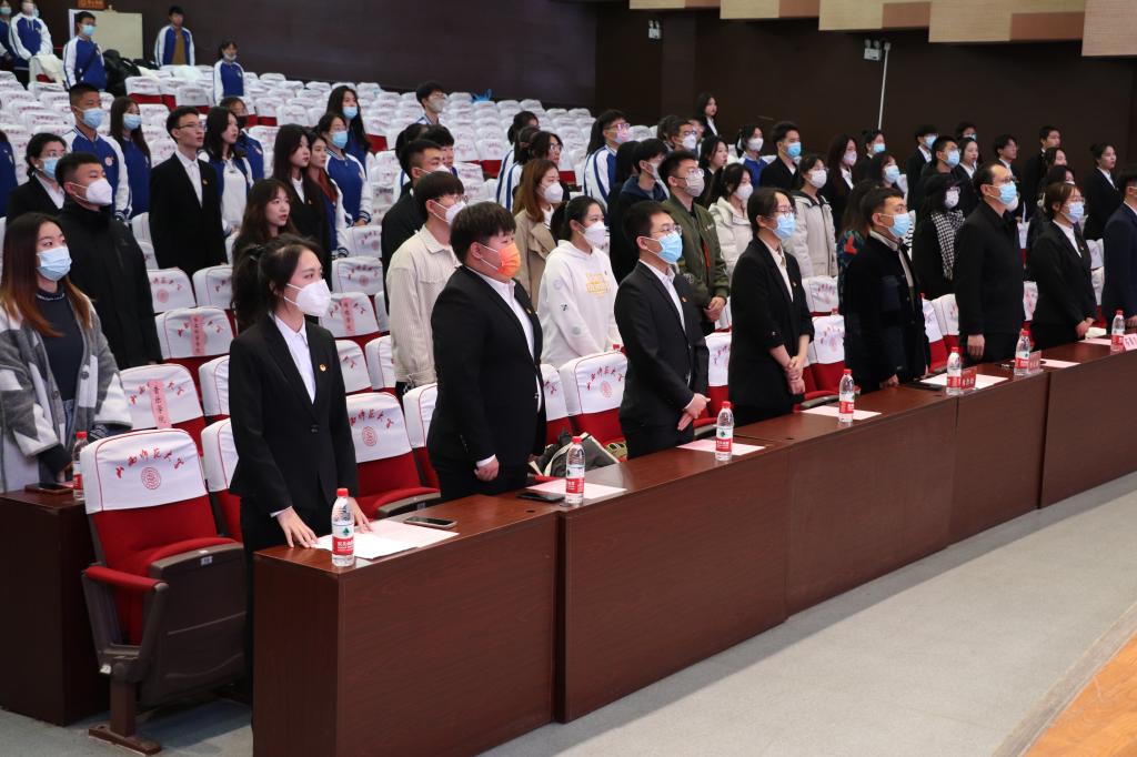 大会第二项,全体成员齐唱中华人民共和国国歌。