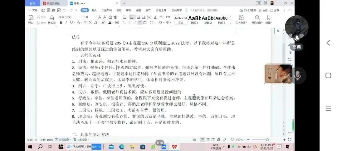 5月28日下午,球盟会团委举办了线上社会学、法学考研及法考经验交流会,邀请已经成功上岸的优秀毕业学子为同学们分享经验。成功上岸的同学对于本次经验交流会做了精心准备,他们从自身经历出发针对考研规划、目标院校、法考、资料文献、指导老师、英语四六级等大家最关注的问题分享了自己的经验并给出建议。