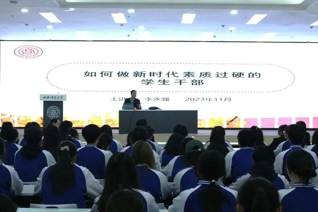 他结合公司发展、公司建设、自身经历等方面,深入剖析了员工骨干所蕴含的深刻内涵,以思维导图的形式简洁明了的说明员工骨干的“桥梁”作用及领头作用。他指出,员工骨干应该具有内外兼修、德才兼备的良好形象,强调员工骨干应该做到“政治强,纪律严,作风正,业务精”能够严于律己、宽以待人,希望大家能够更好地服务同学。