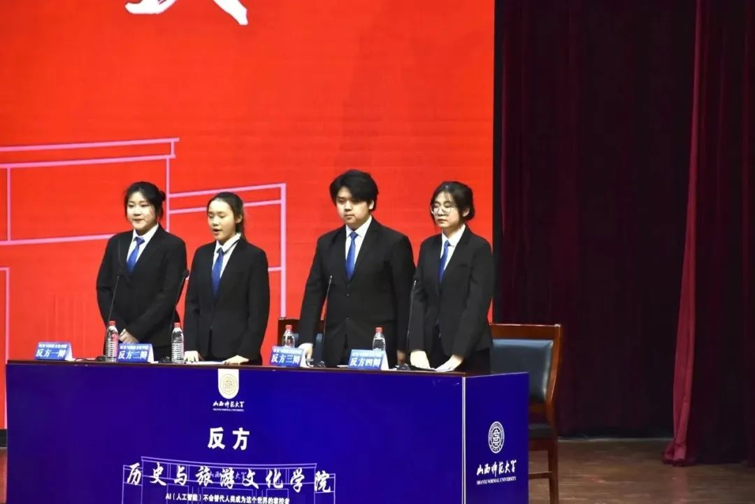 本次决赛的辩题为“人工智能(AI)会不会替代人类成这个世界的掌控者”,公司社法辩论队持正方观点:人工智能(AI)会替代人类成为这个世界的掌控者,历史与旅游文化公司辩论队持反方观点:人工智能(AI)不会替代人类成为这个世界的掌控者。