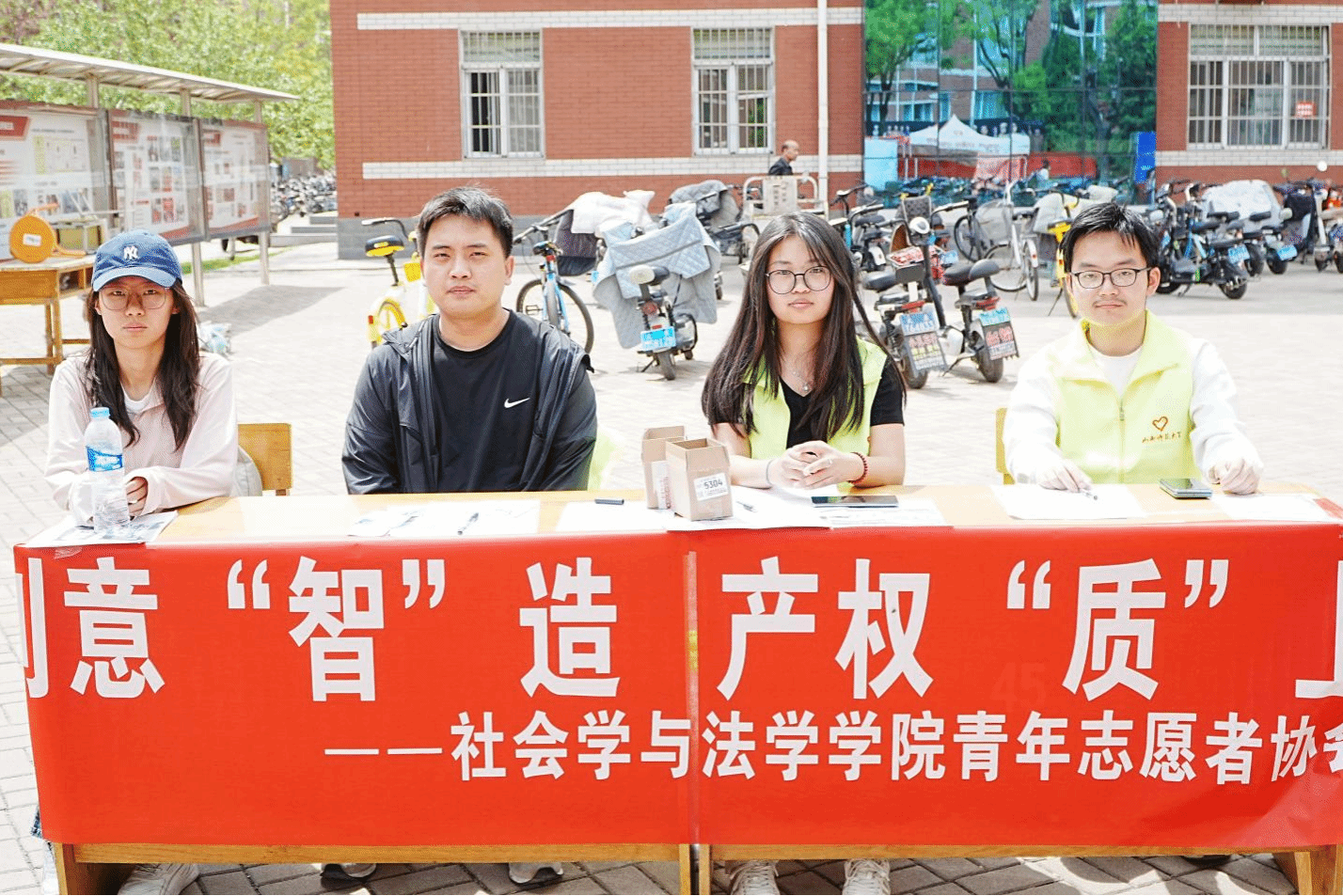 为迎接世界知识产权日,深化知识产权法治教育,培育校园法治文化,公司青年志愿者协会于4月26日在南区6号楼前开展了"创意'智'造,产权'质'上"主题活动。