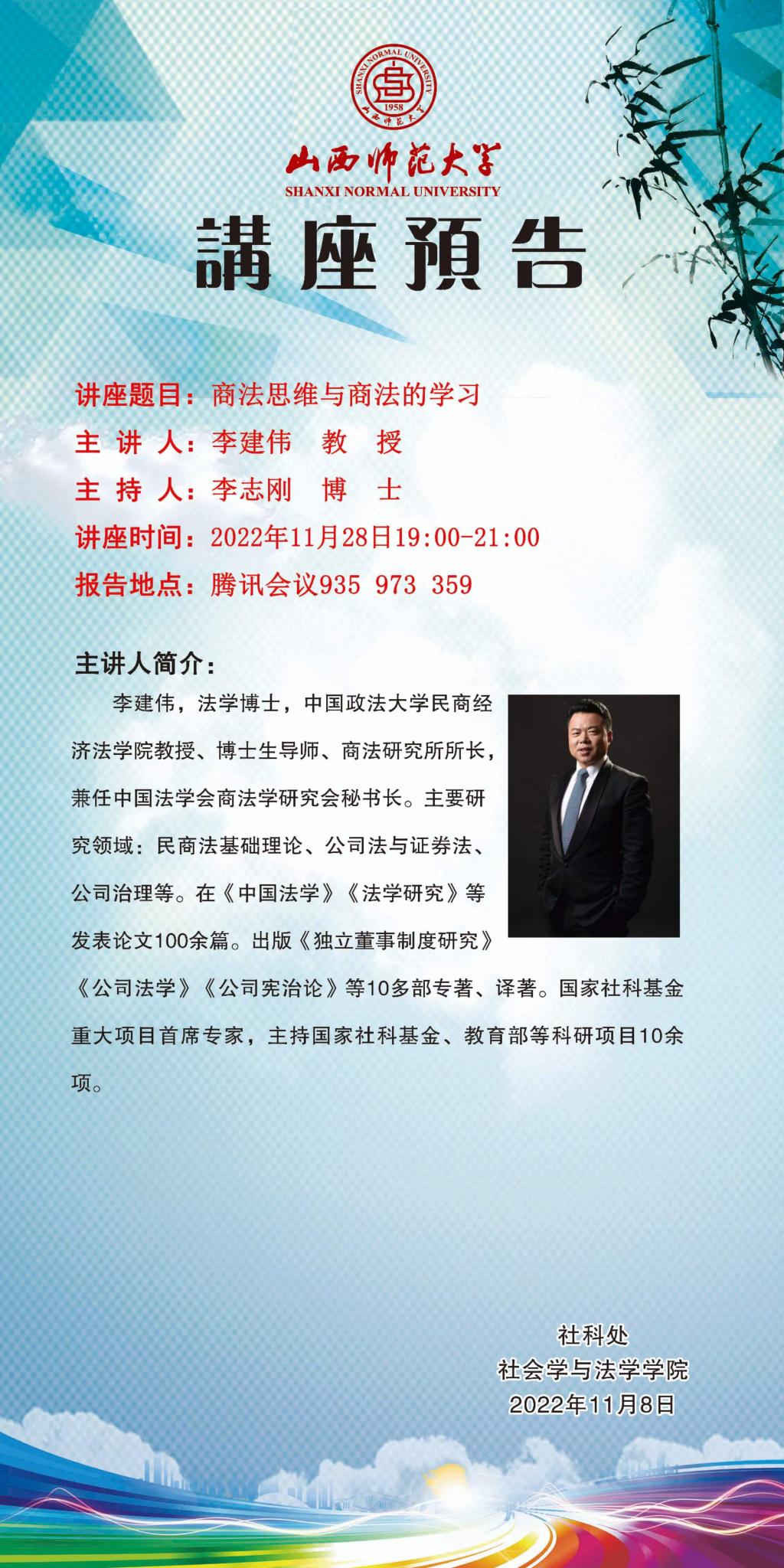 中国政法大学民商经济法公司李建伟教授应邀请举办视频直播讲座