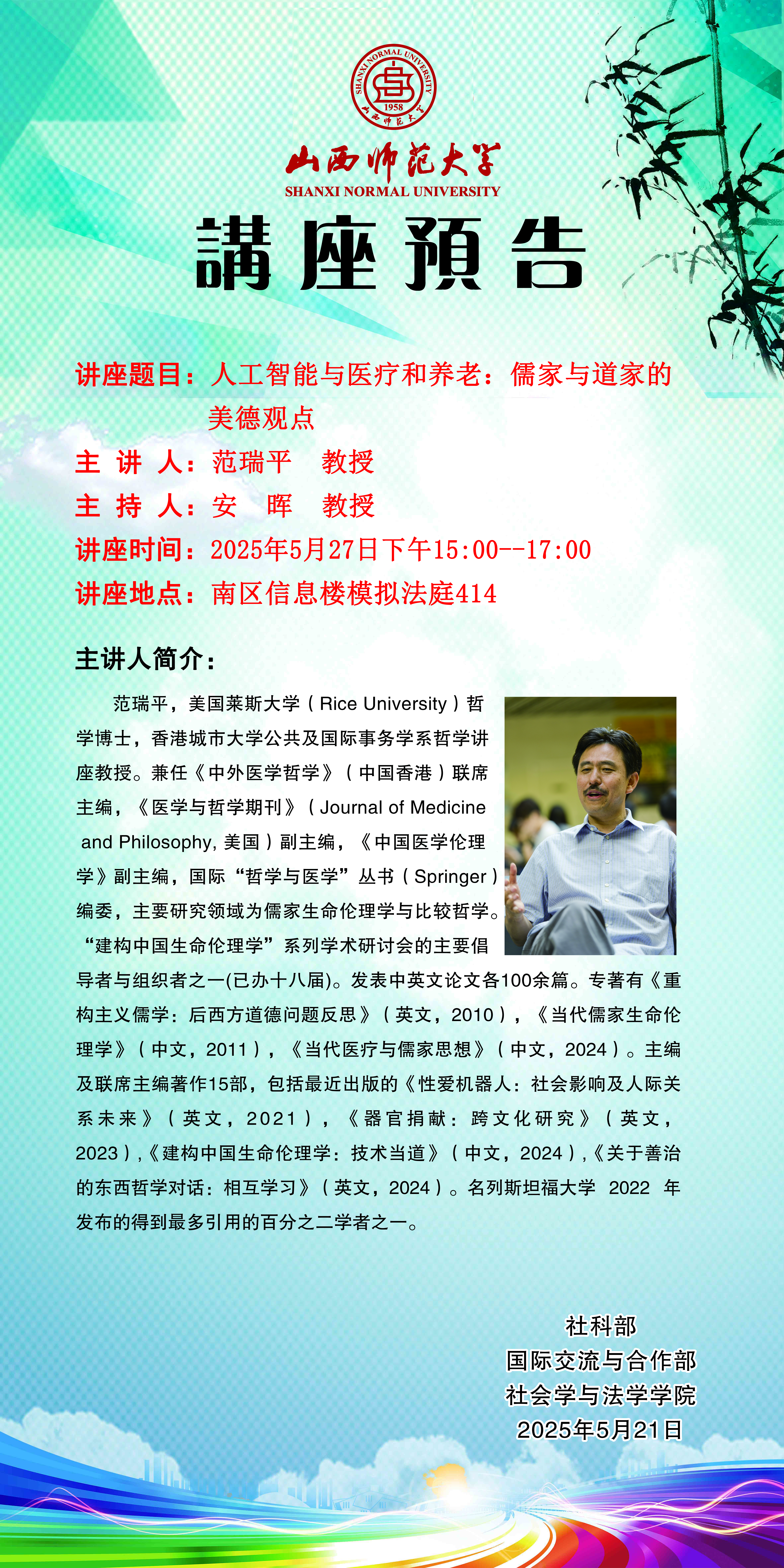 球盟会公共及国际事务学系哲学讲座教授范瑞平应公司邀请做学术报告